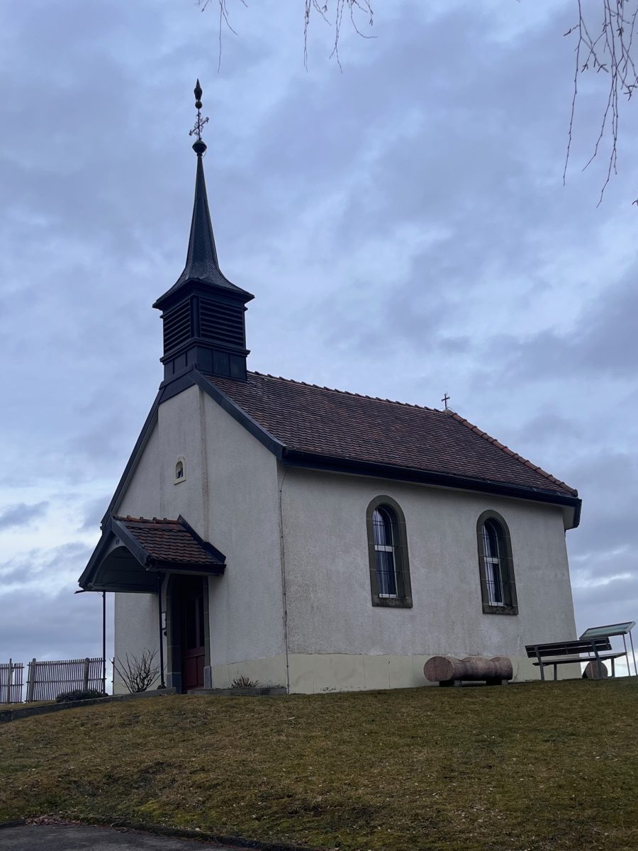 Cette chapelle, bénite le 8 mai 1899, par Mgr D. Thierrin, revérend curé de Promasens, a été élevée sur le lieu où ont eté ensevelis presque tous les habitants de Mossel, morts de la peste noire en l’an 1636.