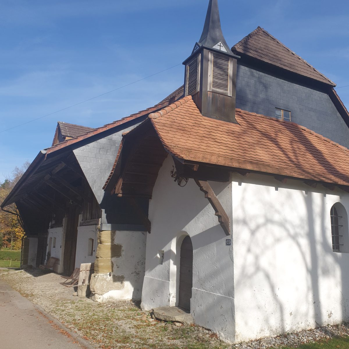 Stationnement à côté de l’église de Mézières, et pris le bus de 13h34 jusqu’à Sâles.